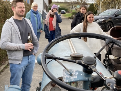 Unser Helferteam. Auf dem Traktor sitzt schon Luca, der zu Jahresbeginn noch unserer jüngstes Mitglied war, abgelösst von Finn und jetzt selbst abgelösst von Louis.