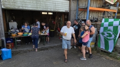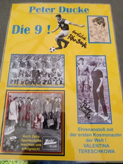 Dort treffen sich die Mitglieder eines Fanclubs der Gebrüder Ducke. zwei ehemalige Ausnahmespieler des Carl Zeiss Jena. Hier mit Autogramm von Peter Ducke vom Vortag. Fussball kann verbinden..