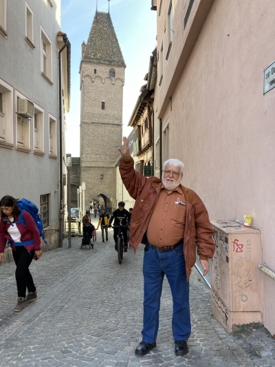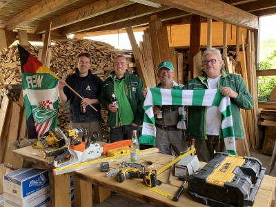 Im Fanclub sind in den letzten Jahren, 2020 - 2022, gefühlt, alle am bauen/umbauen gewesen. Im Zentrum natürlich Nathalie und Mario, die sich in SM-Manier quälten, bis die Wände ihrer Traumwohnung unterfangen waren. Ihre Tätigkeiten verlegen sich derweil an Fassade und Umgebung. Dafür werkeln Marcel und Torsten an ihren jeweiligen Wohnungen, Jan-Owe an seinem Schopf, Dieter an Heizung und Partyraum, Clarissa stehen mit Frank Fassade und Umgebung bevor, und ... die Liste ist nicht vollständig. Mit dieser Seite wollen wir eine ganz andere Seite unserer Mitglieder zeigen. Wir beginnen mit Reto. 2021 versuchte er ja schon den schiefsten Kirchturm Ostfrieslands gerade zu rücken. Im März 2022 spielte Werder in Heidenheim. Uns erreichte ein Hilferuf aus Ulm, wo wir übernachteten: Der schiefe Metzgerturm drohe umzukippen. Noch vor Spielbeginn nutzte Reto die Zeit den Turm etwas auszurichten. Hier sehen wir das Ergebnis: Naja, vorher war er wohl noch schiefer - 400 Jahre erstaunt zuschauen, da kännen wir nicht in 5 Minuten alles richten. Gebrauchen wir Pattys Lieblingswort, Geduld. Geduld für die letzten 2 Meter bis zur Senkrechten!