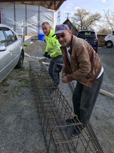 Das ist eine kleine Baustelle. Jan-Owes Schopf! Fundamente, Pflasterungen sind fertig. Jetzt wird auf den Zimmermann gewartet.