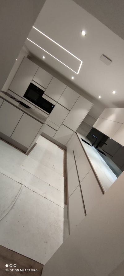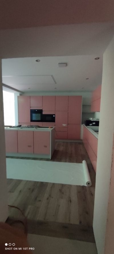 "Gemeinsames aufatmen", die Küche ist weiss ...