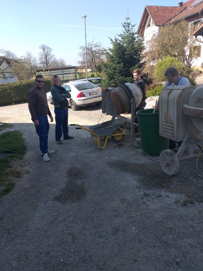 Auch Baustelle: 4 Mann, und nur eine Schubkarre?