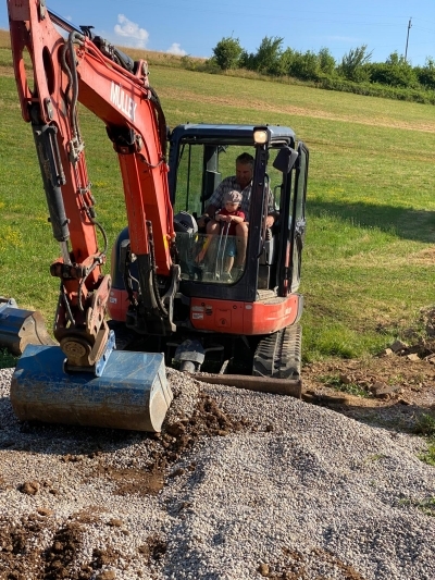Das ist eine kleine Baustelle. Jan-Owes Schopf! Fundamente, Pflasterungen sind fertig. Jetzt wird auf den Zimmermann gewartet.